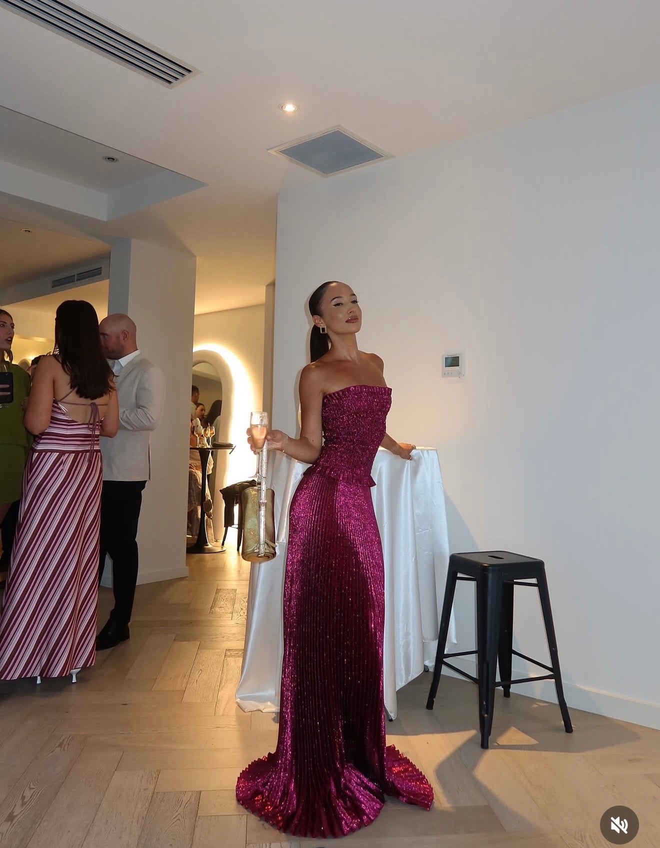 Our glitter fabric is a luxurious and unique texture which has been artfully pleated to create a garment that’s special and intricate. All beautiful things take extra care, this material is delicate. Pleats may naturally soften or wrinkle with time, please handle with extra care. Do not leave folded or squashed under other garments. Best stored hanging in your wardrobe where it can shine.